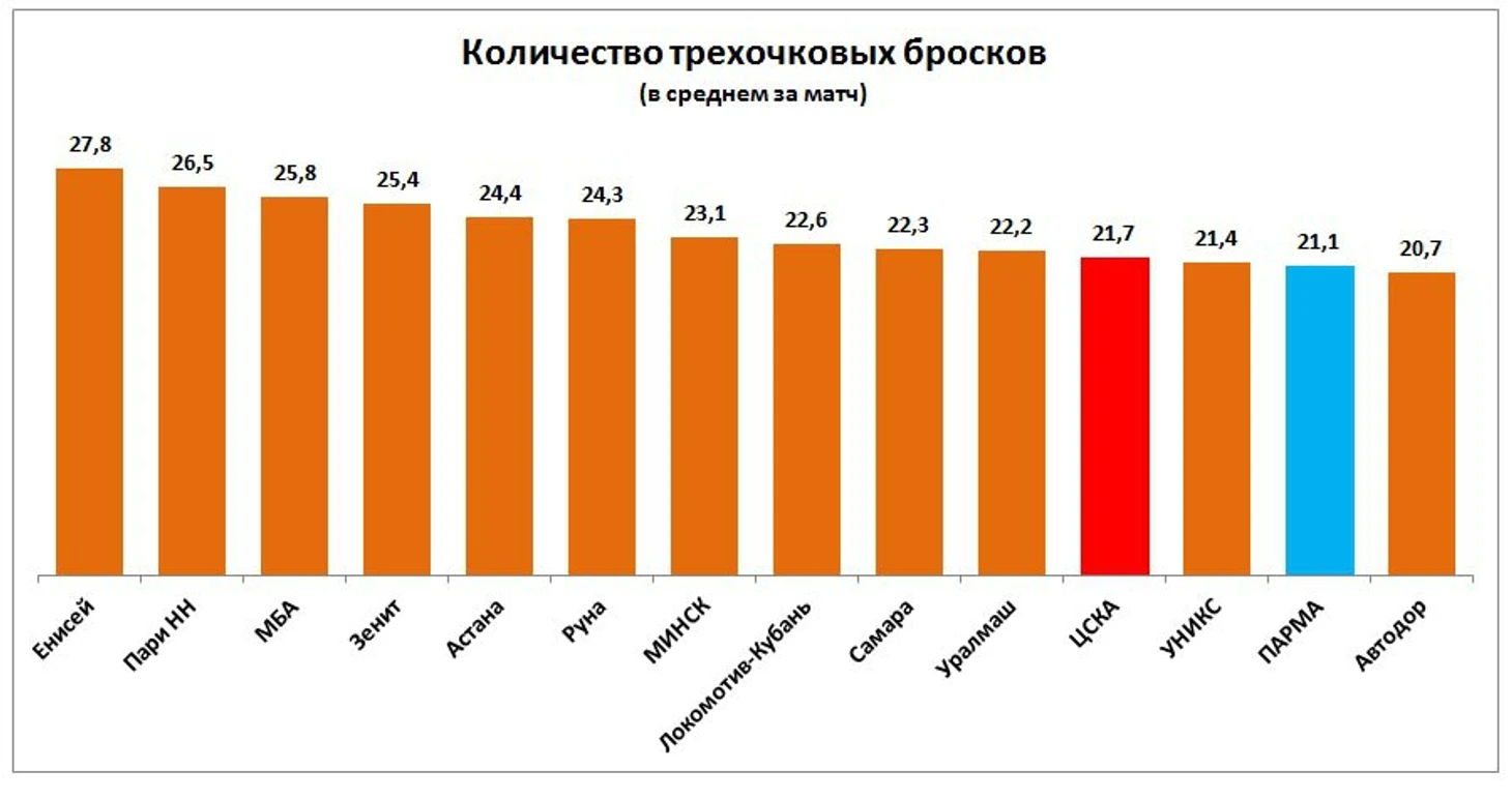 В нападении хозяев отдельно стоит отметить фактор трехочковых. Пермяки в нынешнем сезоне не слишком увлекаются дальними бросками. Реже их в чемпионате из-за дуги атакует только «Автодор».