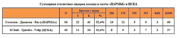А вот лидеры хозяев напротив провели весьма содержательный матч. Несколько выпал лишь Ричард Соломон, которые нахватал необязательных фолов. Зато Айзея Риз и Би Джей Джонсон вновь подтвердили свой класс. Причем оба они забили важные броски в концовке встречи, которые во многом и позволили «Парме» сохранить победный счет.