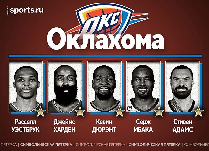Символическая пятерка, которая уходит в небытие. Уже можно, не обладая и минимальными провидческими способностями, предугадать, как Уэстбрука меняет Шэй Гилджес-Александер, как Хардена вытесняет Джейлен Уильямс (у него даже лицо, как у Хардена без бороды), Чет Холмгрен становится лучшим центровым в истории клуба. Тот, кто добьется с ними успеха в плей-офф, обязательно вытеснит Ибаку.