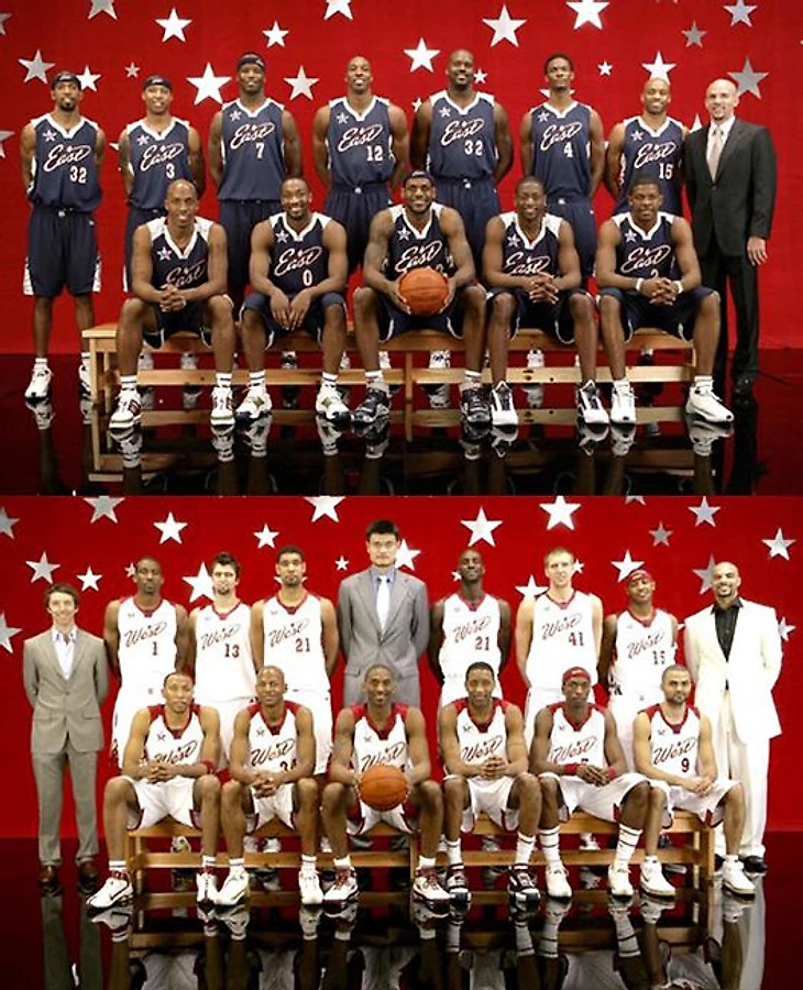Что касается его соперников, то здесь важно понимать, что на тот момент каждый из них уже стал полноценной, состоявшейся звездой. Леброн приехал на вечерину в качестве действующего MVP прошлого Матча звезд и форварда сборной Востока с наибольшим количеством голосов: за него проголосовали 2516049 человек. Больше него набрал только один человек – Дуайт Ховард, который стал единоличным лидером в голосовании среди всех: поглядеть на центрового «Орландо» захотели 3150181 человек. При том что оба были сверхпопулярны, ни Леброн, ни Ховард еще не достигли того возраста и статуса, когда люди боятся показаться смешными. Это были молодые парни, не чуждые самоиронии, любящие подурачиться и посмеяться друг над другом. Поэтому, когда Шак вызвал каждого из них на батл, оба с радостью вписались.