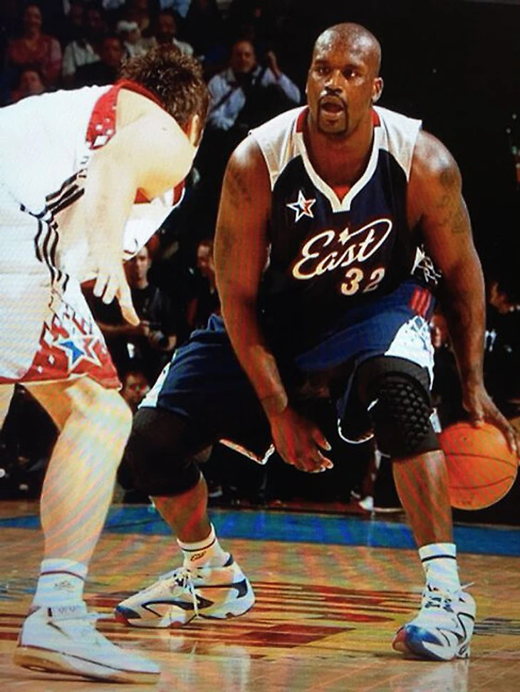 Старая школа во всей красе. Даже не будучи экспертом шоу «Танцы на ТНТ», сложно не заметить, что среди трех баскетболистов только Шак не ограничивался верхним брейком и элементами «электрик буги» (любимая в народе «техника робота»). О’Нил позволял себе вспомнить что-то из поппинга или попвокинга (ритмичная, акцентированная походка, на основе которой Майкл Джексон создал свой самый патентованный танцевальный элемент), бросался в слайдинг и с готовностью крутил самоубийственный гелик (вертушка или геликоптер – основа основ нижнего брейка). Наблюдать все это в исполнении человека его комплекции не просто смешно, но и без всяких скидок впечатляюще.