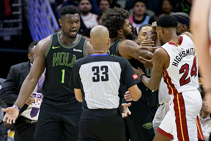 Звезда «Майами» Джимми Батлер был одним из четырех игроков, удаленных с площадки в пятницу вечером, после того как в четвертой четверти матча между «Хит» и «Пеликанс» вспыхнула драка.
