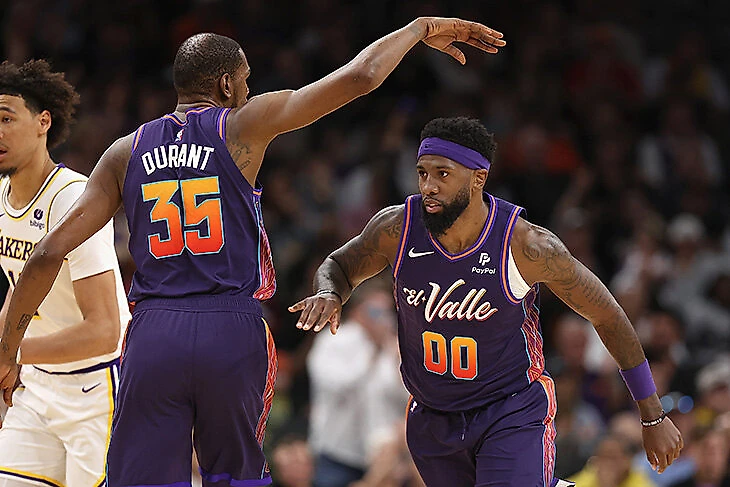 Однако на выручку пришли ролевики и запасные игроки, которые и помогли «Финиксу» все-таки дожать команду Леброна со счетом 123:113. Дюрэнт считает, что это эффект слишком плотной защиты «Лейкерс» на нем и Букере:
