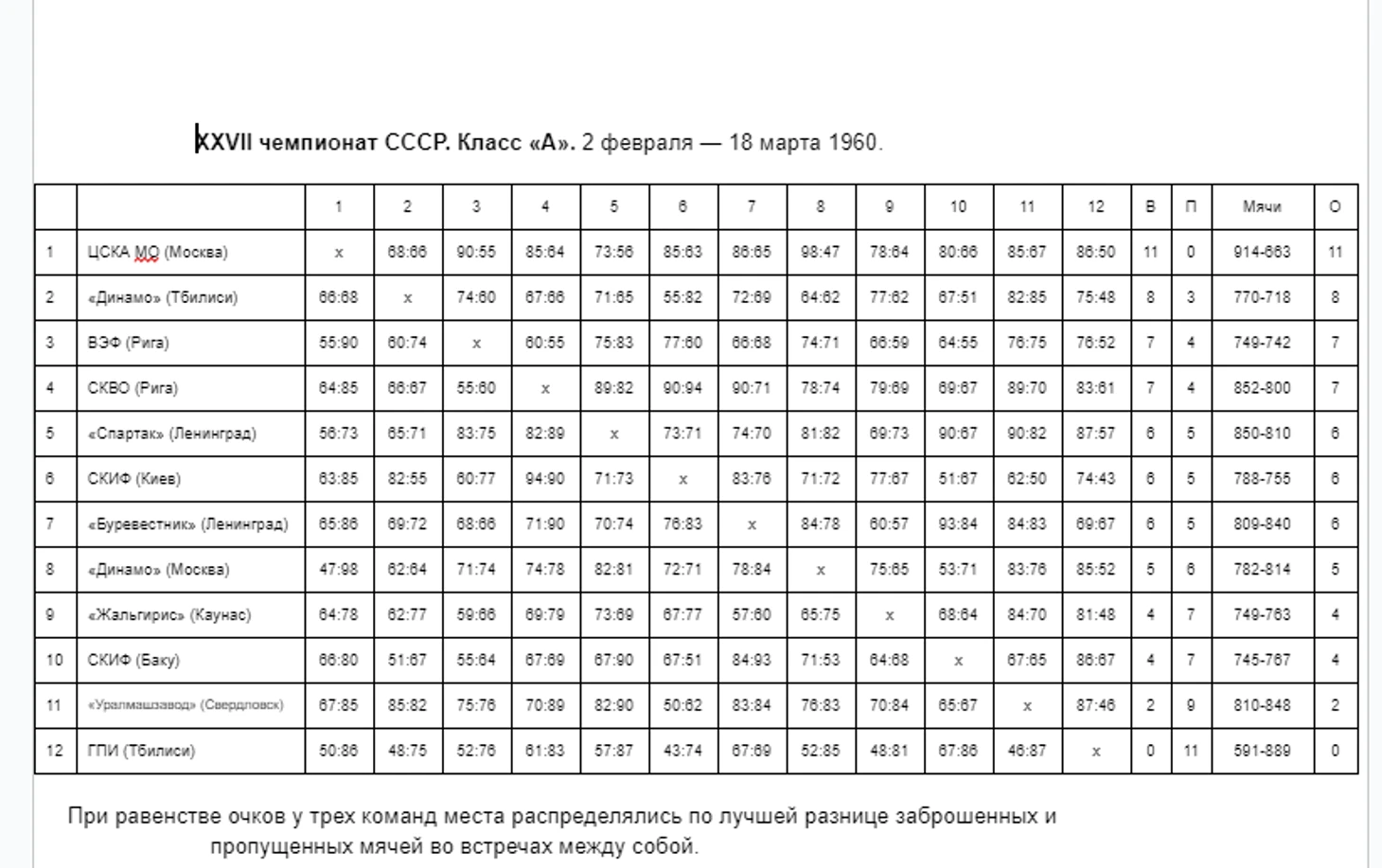 XXVII чемпионат СССР, 1960 год. Начало эры ЦСКА и 92,3% с линии от Кондрашина