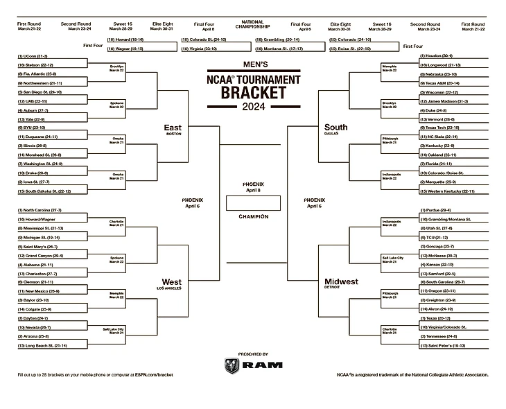 15. Какие игры в Sweet 16 выглядят особо привлекательными? Дьюк против Хьюстона. Первые имеют пять чемпионств и являются той самой «голубой кровью», а вторые очень долго и упорно трудились, чтобы добиться того, где находятся сейчас Юкон против Сан-Диего. Сиквел битва за чемпионство 2023 года, ничего особо не поменялось в вопросе того, кто будет фаворитом Пердью против Гонгазы. Это Детройт. В ноябре Гонгаза проиграл 63:73, Иди набрал 25 очков при 14 подборах. В прошлом году Гонгаза тоже уступила Пердью, 18 очков Северная Каролина против Алабамы. Они играли и в прошлом году, Алабама выиграла 103:101, в четвертом овертайме 16. Какие потенциальные, уникальные игры Elite 8 могут нас ожидать? Хьюстон против NC State. Будет ли это отголосками игры 1983 года? Вальвано и Лоренцо Чарльз надолго останутся в памяти болельщиков и то сказочное взаимодействие между ними тренер-игрок, когда Чарльз на последних секундах игры вырвал победу мощным слэм-данком, а Вальвано совершил свою триумфальную победную пробежку по паркету. Теперь они навсегда связаны. Вальвано скончался в 93 году от рака, а Чарльз в 2011 в результате несчастного случая. Они похоронены недалеко друг от друга на кладбище Роли
