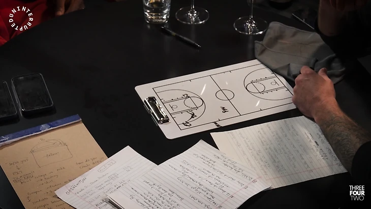 Редик: ATO – вещь особая. Большая часть успеха в его исполнении – это правильный тайминг. Мне интересно мнение каждого из вас в отдельности, и как игрока, и как тренера, вот по какому вопросу: практиковались ли вы в исполнении ATO, был ли у вас набор из нескольких розыгрышей, которые выходили за рамки ваших обычных схем и наработок? *обращается к Дэмброту* И был ли у тебя тренер, который тренировал ATO? *указывает на Леброна*