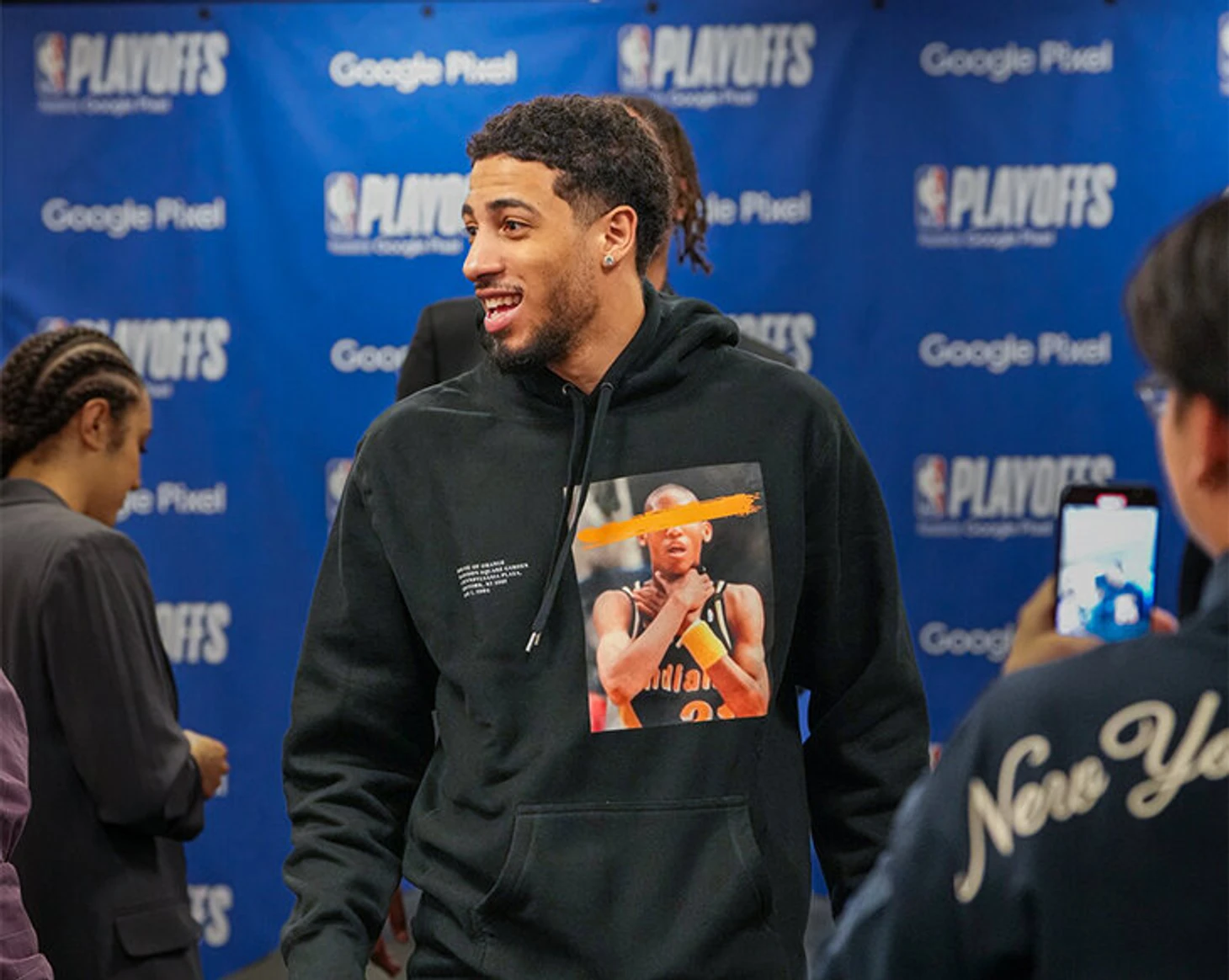 Тайриз не упустил возможности подколоть соперника после победы, ведь этот соперник – самый принципиальный. «Никс» и «Пэйсерс» славно бодались в 90-е, и легенда «Индианы» Реджи Миллер стал главным символом того противостояния на пару с преданным болельщиком «Никс» режиссером Спайком Ли. Собственно, этот жест на фото с худи Халибертона их и объединяет.