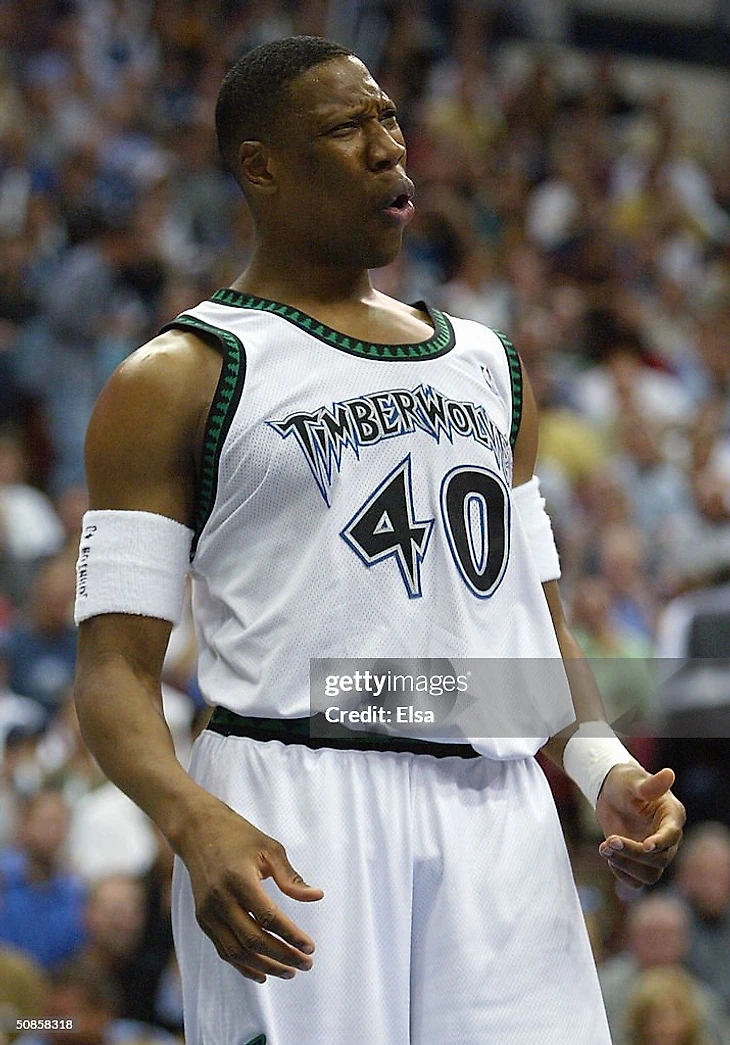 Мощный Форвард - Кевин Гарнетт (27 лет, регулярка - 82 игры/82 в старте, 27,2 оч., 13,9 под., 5 асс., 2,2 б-ш., плей-офф - 24,3 оч., 14,6 под., 5,1 асс., 2,3 б-ш.) Главная звезда команды - вожак стаи, до сих пор олицетворение Миннесоты в глазах миллениалов. Мы говорим Гарнетт, подразумеваем Тимбервулвз и наоборот. Все 8 лет своей карьеры к тому моменту Кевин провёл в Миннеаполисе. Все 8 лет Кевин выходил в плей-офф и год от года лишь набирал обороты, мощь и хватку. От 17 очков в среднем в 97м, до 27 в 2003м. Самый праймовый сезон KG, даже на фоне сегодняшнего дня выглядит дико! Сейчас с такими цифрами он был бы лидером по подборам, в топ-5 по перехватам и блок-шотам и в топ-20 по скорингу, несмотря на выросшую на 20% результативность лиги. Добавьте сюда 82 матча регулярки, со средними 39 минутами на паркете и обалдейте от 6-го места в голосовании DPOY-2004. В плей-офф Кевин выдал сумасшедший трипл-дабл во втором матче первого раунда с 22 подборами, при 20 очках, который до той поры удавался лишь Абдул-Джаббару, Биллу Расселлу и Чемберлену, а с тех пор не повторен даже Йокичем.