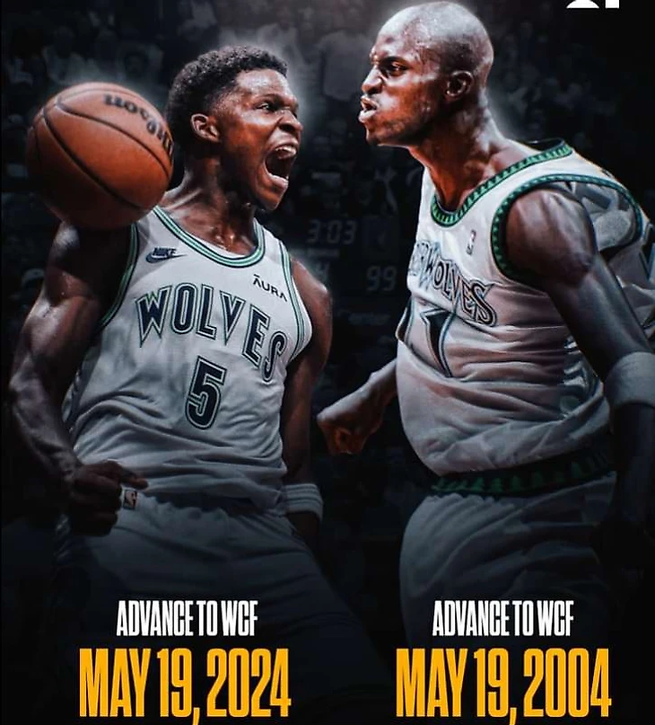 В обоих случаях историческое достижение добывалось в седьмых матчах, в обоих случаях в серии участвовал действующий MVP регулярки. Но если в 2004м KG принёс команде первое место на Западе и гарантировал решающие игры дома, то в этом году выбивать заветную путевку пришлось в высокогорном Денвере у чемпионских «наггетс», с самородком Йокичем. Отчего сегодняшнее достижение выглядит еще масштабнее.