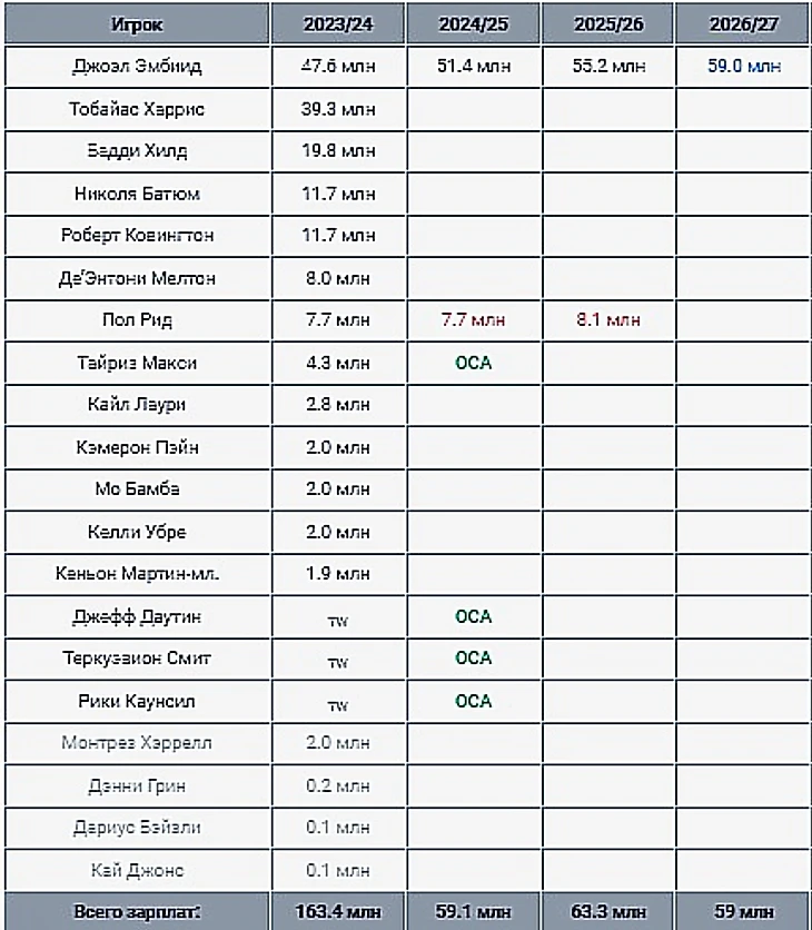 - в платежке 76-х на следующий сезон – один Эмбиид, и то непонятно в каком он состоянии вернется с Олимпиады – как тут можно хоть что-то планировать? а тем более пытаться получить достойный контракт? Они сами в себя похоже не верят