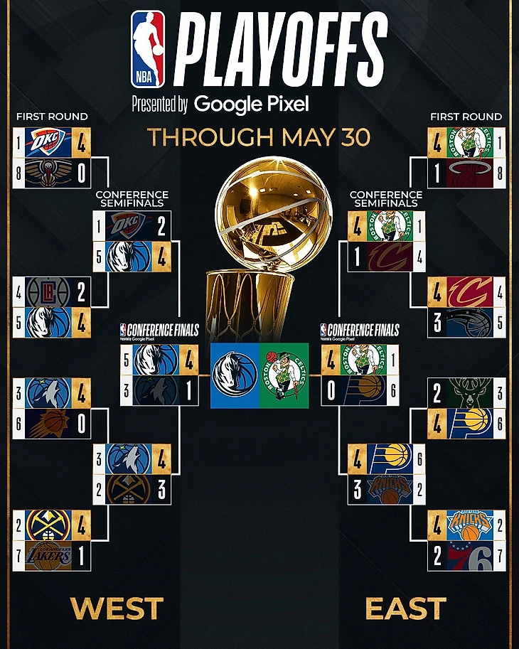 В полуфиналах победили более здоровые Индиана, Бостон и Миннесота. Ну а у Оклахомы с ее вайбом и конским запасом сил и командного мастерства нечем было крыть жизненную энергию пьющего сразу после матчей пивас Дончича. Хотя... многие говорят, что это просто хитрый Джейсон Кидд переиграл лучшего тренера сезона 2023/24 Марка Дэйгнолта.