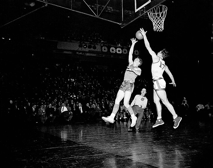 Но в сезоне-56/57 произошла смена власти. Как раз на сцену вышел «Бостон», а параллельно с ним на Западе – «Сент-Луис», до того обе команды ни разу не играли в финале. Финалисты прошлых лет, напротив, совсем перестали выходить в решающую серию после 1957-го. И вот на сломе эпох еще барахтающиеся «Нэтс» (не путать с «Нетс») и «Уорриорз» пытались как-то держаться за достижения прошлого и навязать борьбу будущему клубу-доминатору с Биллом Расселлом, Бобом Кузи и остальными звездными «Кельтами». «Сиракьюз» (город на севере штата Нью-Йорк) победил в 1955-м, «Филадельфия» – в 1956-м.