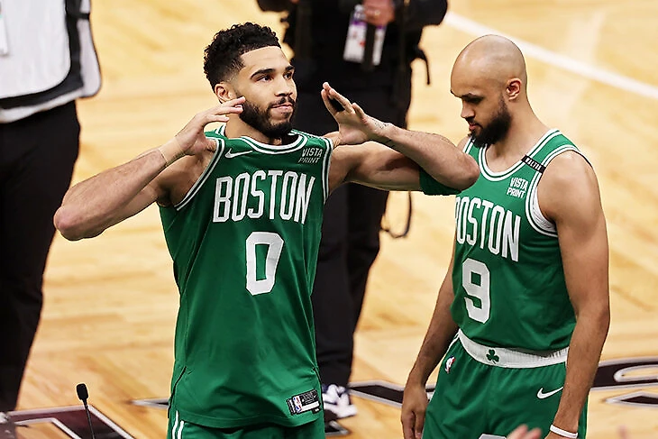 Эта версия «Бостона» так давно с нами, что уже всем надоела примерно лет пять назад: Тейтума, автора рекорда результативности в седьмых матчах, предпочитают называть чокером, а Брауна, набиравшего по 30 очков в финале еще два года назад, криворуким.