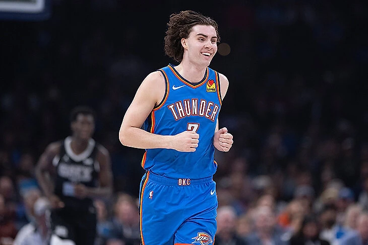 Все они классные игроки, полезные и на площадке, и как активы. Но давай привыкать смотреть на «Оклахому» не как на испытательный полигон, а как на команду поздних раундов плей-офф. Ротация там сжимается до семи-восьми человек. Гилджес-Александер, Джейлен Уильямс и Чет Холмгрен неприкасаемы. Плюс кто-то будет играть запасного большого. Значит, остаются два слота в основе, один на скамейке и какие-то огрызки минут от ШГА и ДжейДабба. Тесновато.