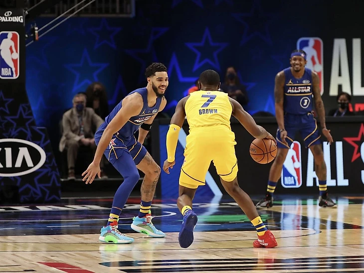 Правда, с точки зрения индивидуальных наград так нельзя сказать. В 2021-м Браун дебютировал на Матче всех звезд (для Тейтума это уже был второй). Теперь они вместе играют на только в «Бостоне», но и на Олл-Старе... хотя как «вместе» – Браун и Тейтум представляли разные команды, потому что на МВЗ устроили «драфт звезд» в команды Леброна и Дюрэнта.