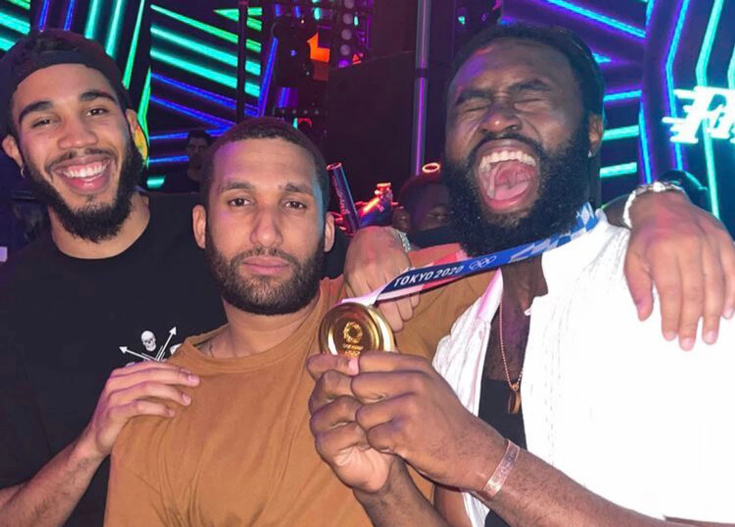 Слухи, к которым они сами не давали ни единого повода. Когда Тейтум вернулся из Токио с золотой олимпийской медалью, отмечать победу он отправился вместе с одноклубником (и каким-то анонимом на фото). Даже дал поносить цацку:
