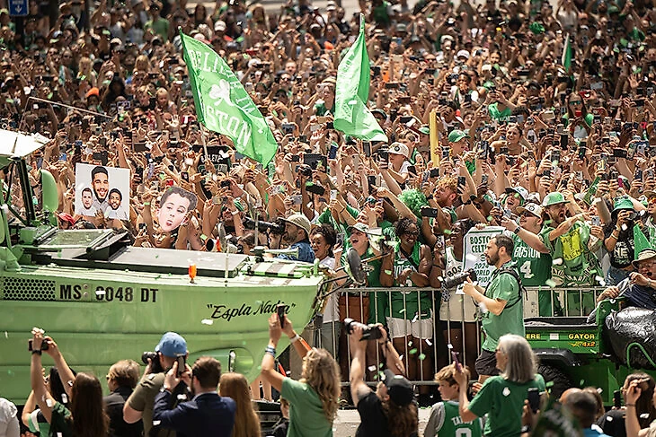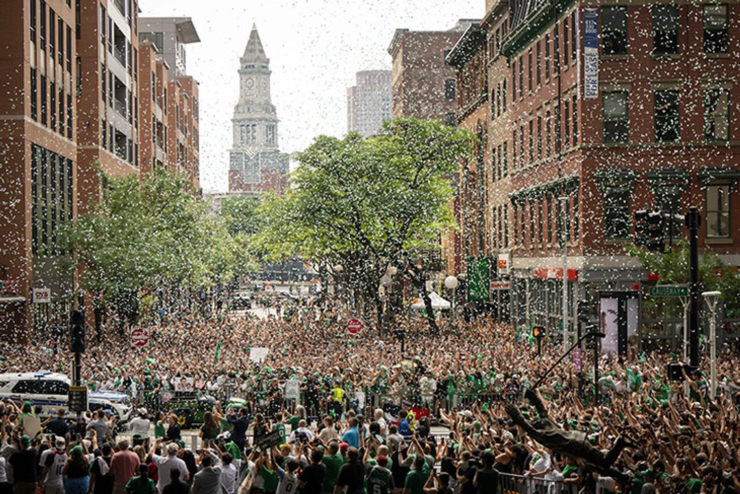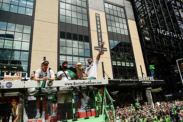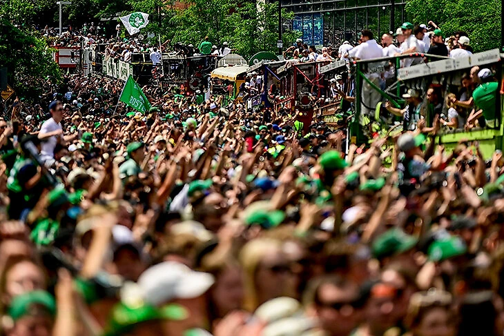 Сегодня в Бостоне не работали детские сады, а парковка в центре была запрещена: несмотря на страшную жару на этой неделе, «Селтикс» собрали больше миллиона зрителей на парад, который владелец клуба Вик Грусбек назвал «трансформирующим жизни».