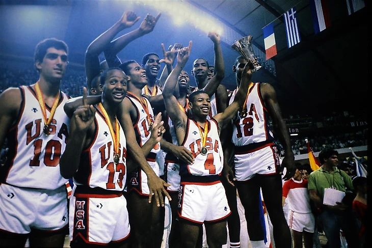До участия в мировых первенствах звезд НБА было еще сравнительно далеко, но американцы привезли очень сильную сборную, в которой тон задавали как раз будущие игроки ассоциации: Дэвид Робинсон, Кенни Смит, Чарльз Смит, Маггси Богз и Стив Керр. Тем удивительнее, что уверенно пройдя первый этап, американская сборная начала второй с неожиданного поражения от сборной Аргентины. Нужно было на заказ выигрывать у сильной сборной Югославии, чтобы не остаться за бортом плей-офф. Сделать это удалось и довольно уверенно со счетом 69 : 60. Сборная США заняла первое место в группе, а в полуфинале одолела бразильцев со счетом 96 : 80, несмотря на 43 очка, набранные Оскаром Шмидтом.