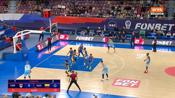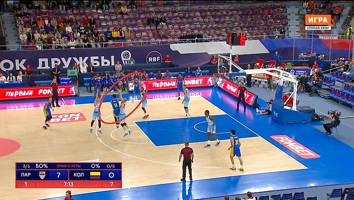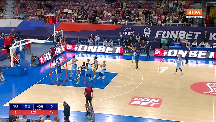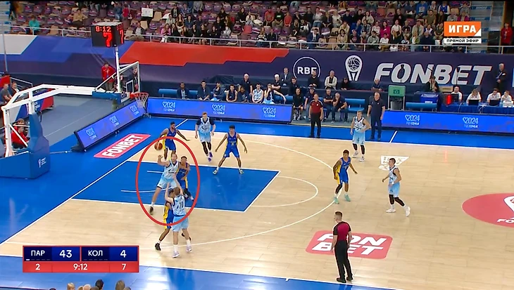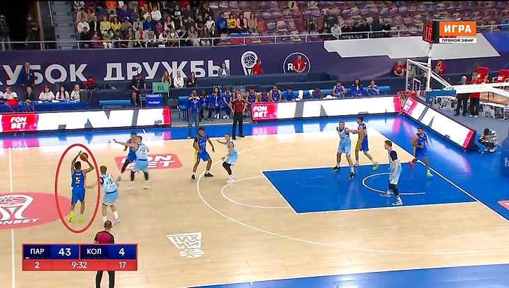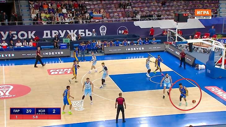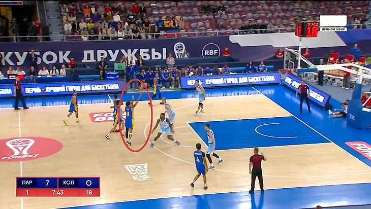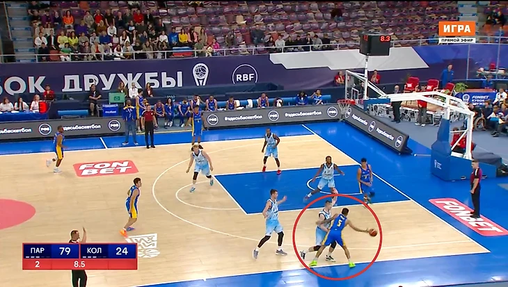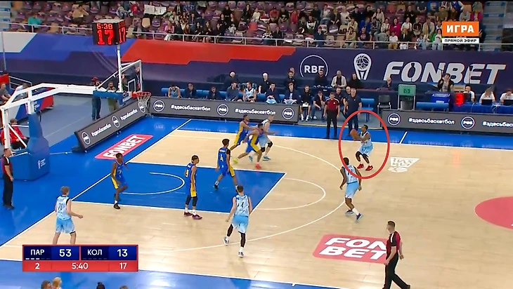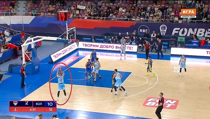 5. В следующем же владении все еще центровой Карлос Ривас водится на периметре. В профессиональном баскетболе такое позволяют делать только Виктору Вембаньяме, пусть тот и постоянно ошибается в таких ситуациях.