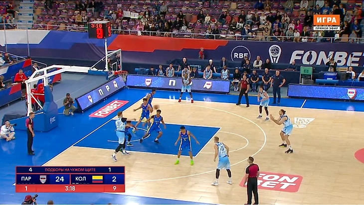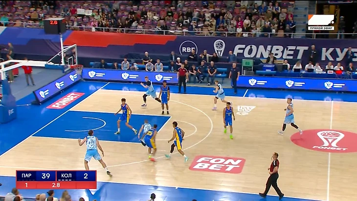 11. Момент, четко отделяющий профессионалов от всех остальных. До конца четверти остается 3,8 секунды – Колумбия уже не может фолить, но игроки и не стараются отзащищаться. Этого времени «Парме» сполна хватает, чтобы пересечь площадку с дриблингом, залезть под щит и сделать скидку на «большого».