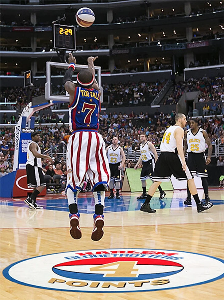 Не так далеко, как в шоу-матчах «Гарлема», но дальше, чем в Матче знаменитостей НБА – на расстоянии 28 футов.
