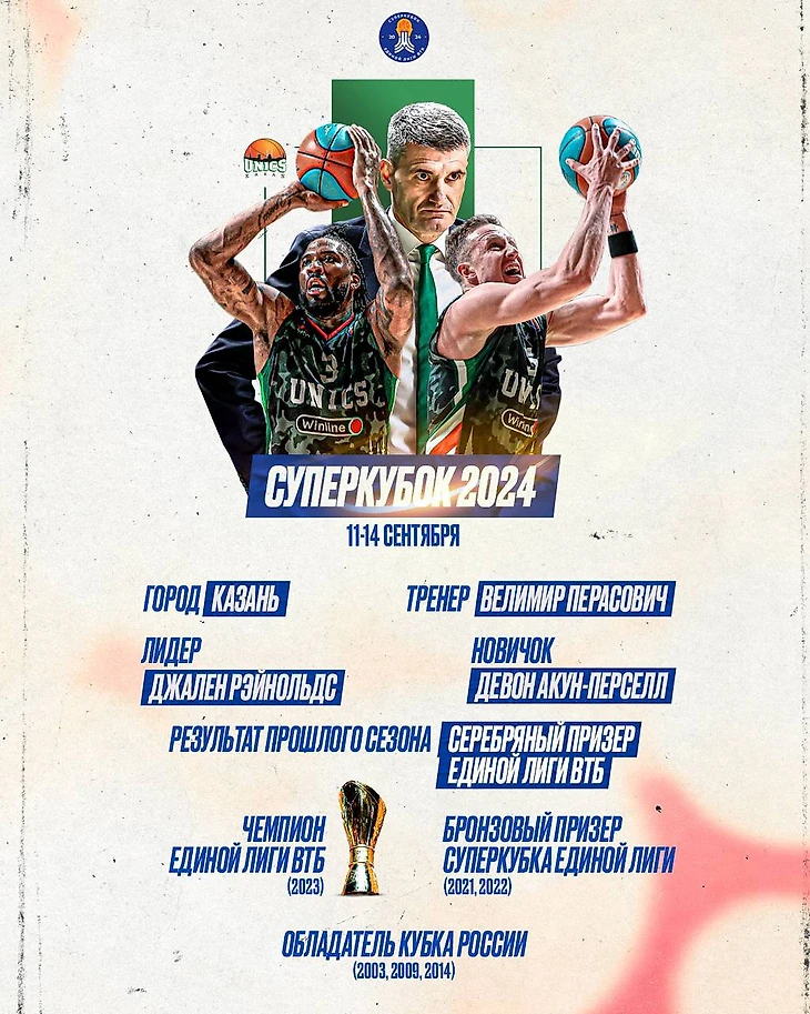 Финалист минувшего сезона полностью сохранил конкурентоспособность, ну а то, как Велимир Перасович меняет акценты в атаке после потери северомакедонского наконечника копья мы узнаем уже во время Суперкубка. К предсезонному турниру УНИКС подходит, имея проблемы с составом – отсутствие нескольких травмированных может сказаться на результате.