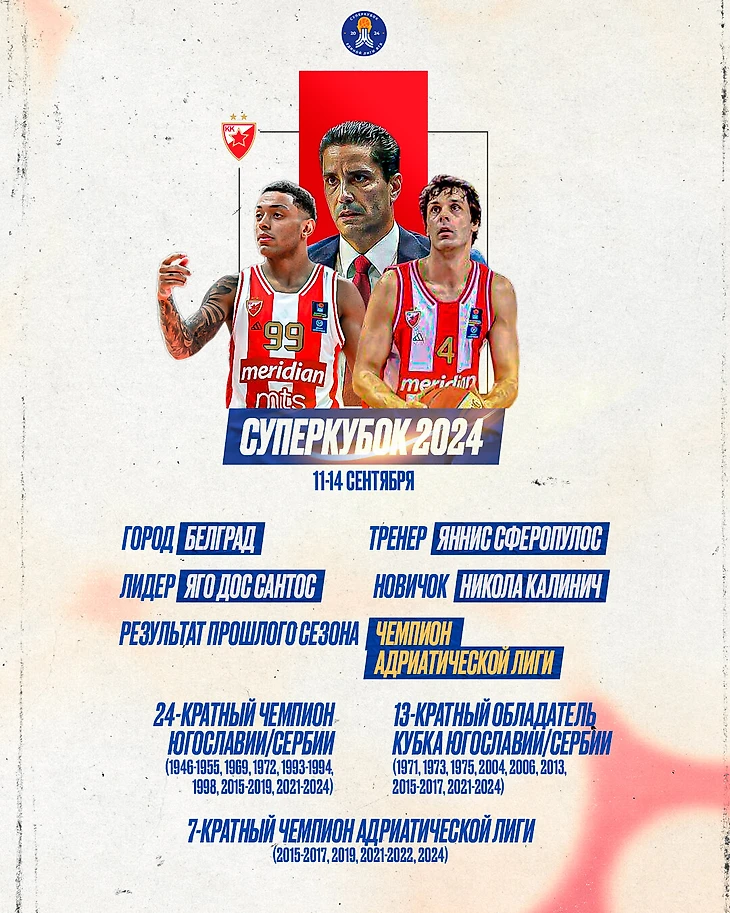 Действующий победитель Адриатической лиги и участник Евролиги – украшение Суперкубка. Явных суперзвезд в ростере Янниса Сферопулоса нет, но в целом подбор игроков очень добротный. Яго дос Сантос, Коди Миллер-Макинтайр, Никола Калинич – в последнее время собственными глазами таких исполнителей российские болельщики наблюдают нечасто.