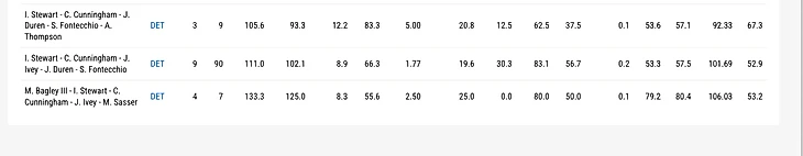 Помимо этого, в активе у Бикерстаффа прогресс по пост-ап комбинациям (с 28-й строчки по реализации в 21 году за сезон поднялись до 10-й), по спот-ап, игре снайперов в топ-лок или кэтче. По-моему для «Детройта» – это отлично подходит.