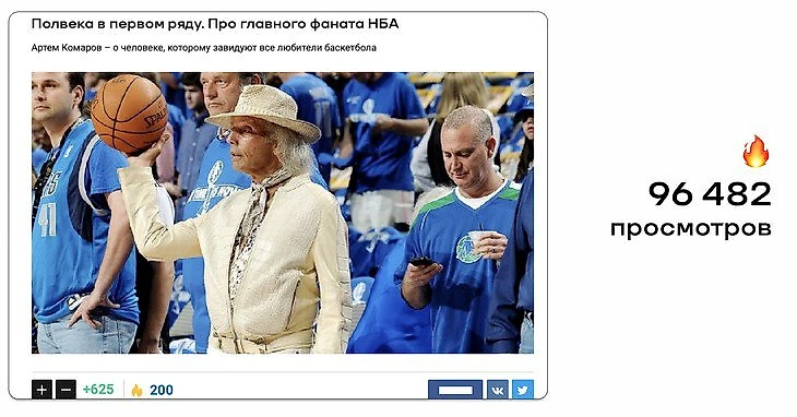 При этом, хоть у меня и не такой маленький канал, и все хорошо, я пишу на Трибуне, потому что у нее самое массовое русскоязычное баскетбольное и спортивное комьюнити. И на Трибуне точно есть люди, которые не подписаны на канал, но они точно с удовольствием читают мои тексты. Еще удобно загружать на Трибуну большие тексты, потому что не все может влезть в один телеграм-пост. Мне кажется, что сейчас это — самая удобная платформа, чтобы загрузить большой текст и поделиться им. Потому что в канале почти все точно читают или сидят на Спортсе, и когда они видят ссылку на Спортс, то кликают.