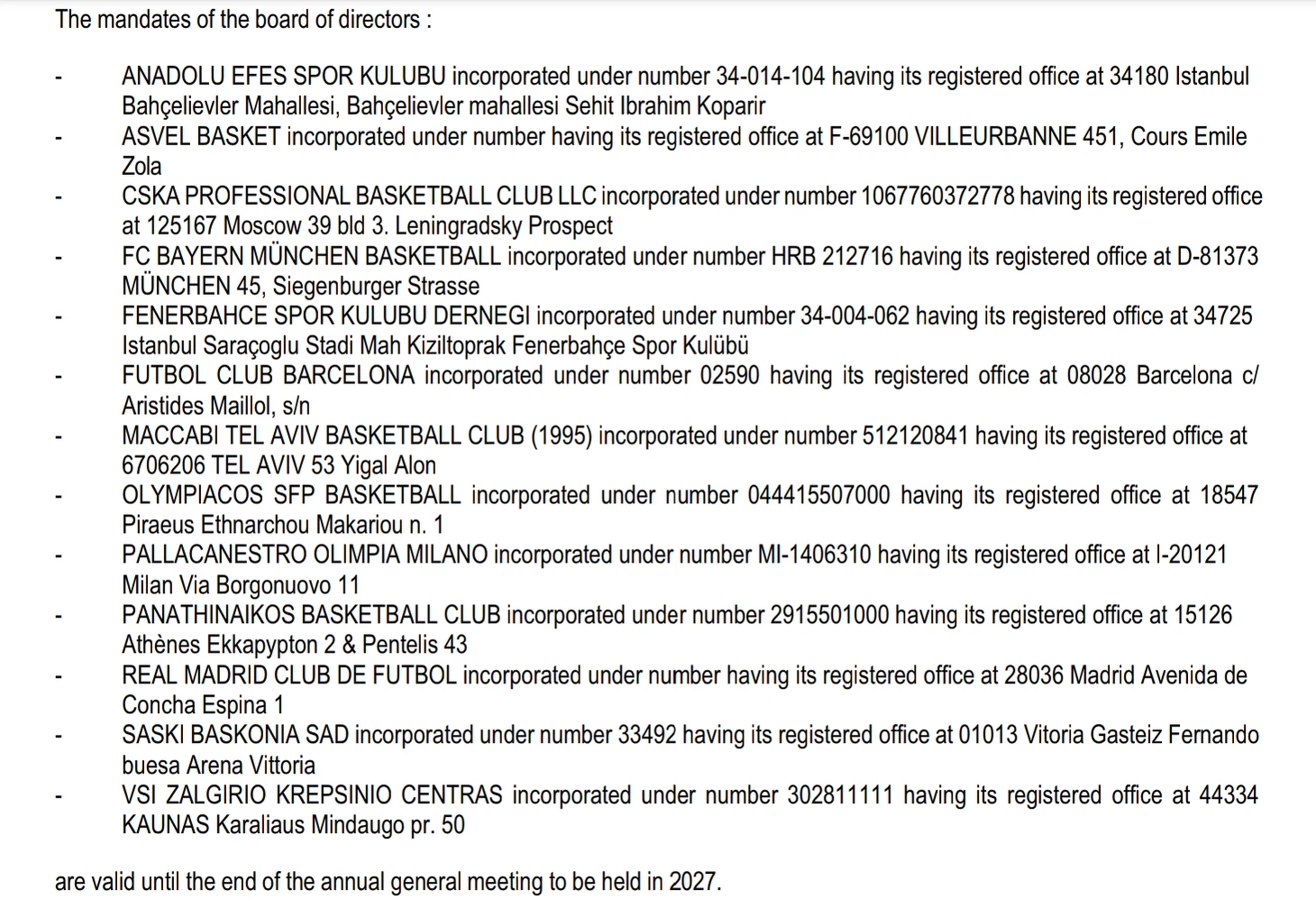 Исключить ЦСКА из состава акционеров нельзя, чтобы отодвинуть клуб от участия в сделке. «Мы должны понимать разницу. ЦСКА является акционером компании, и ничто не мешает им быть акционерами, поэтому они останутся акционерами лиги», – заявлял экс-глава Евролиги Жорди Бертомеу. ЦСКА останется в полномочиях до 2027 года. Это видно в выписке из люксембургского бизнес реестра.