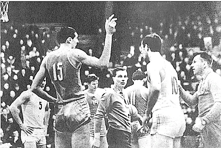 Сейчас национальная команда также уверенно обыграла всех соперников. В Каунасе были побеждены ленинградский «Спартак» (+18), рижский СКА (+16), «Калев» (+18), ВЭФ (+23), «Жальгирис» (+21)… Все ждали, что достойное сопротивление окажет чемпион страны ЦСКА, как вдруг сборная взорвалась, продемонстрировала свой лучший баскетбол и разгромила армейцев (+55). Что это было? Сильный раздражитель? Продолжение особенного противостояния Гомельский – Алексеев? Или демонстрация силы армейцами, призванными в сборную, тем, кого взяли на их место: мол, не расслабляйтесь, мы вернемся? А надо сказать, что в сборную Гомельский забрал аж пятерых из ЦСКА – Травина, Селихова, Липсо, Вольнова и Андреева. И что из-за возрастного ценза армейцам пришлось расстаться с Бородиным, Корнеевым и Зубковым. Да и Алачачян уже выходил на площадку только в случае крайней необходимости – все больше работал с Алексеевым в качестве помощника.