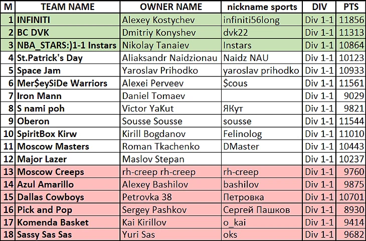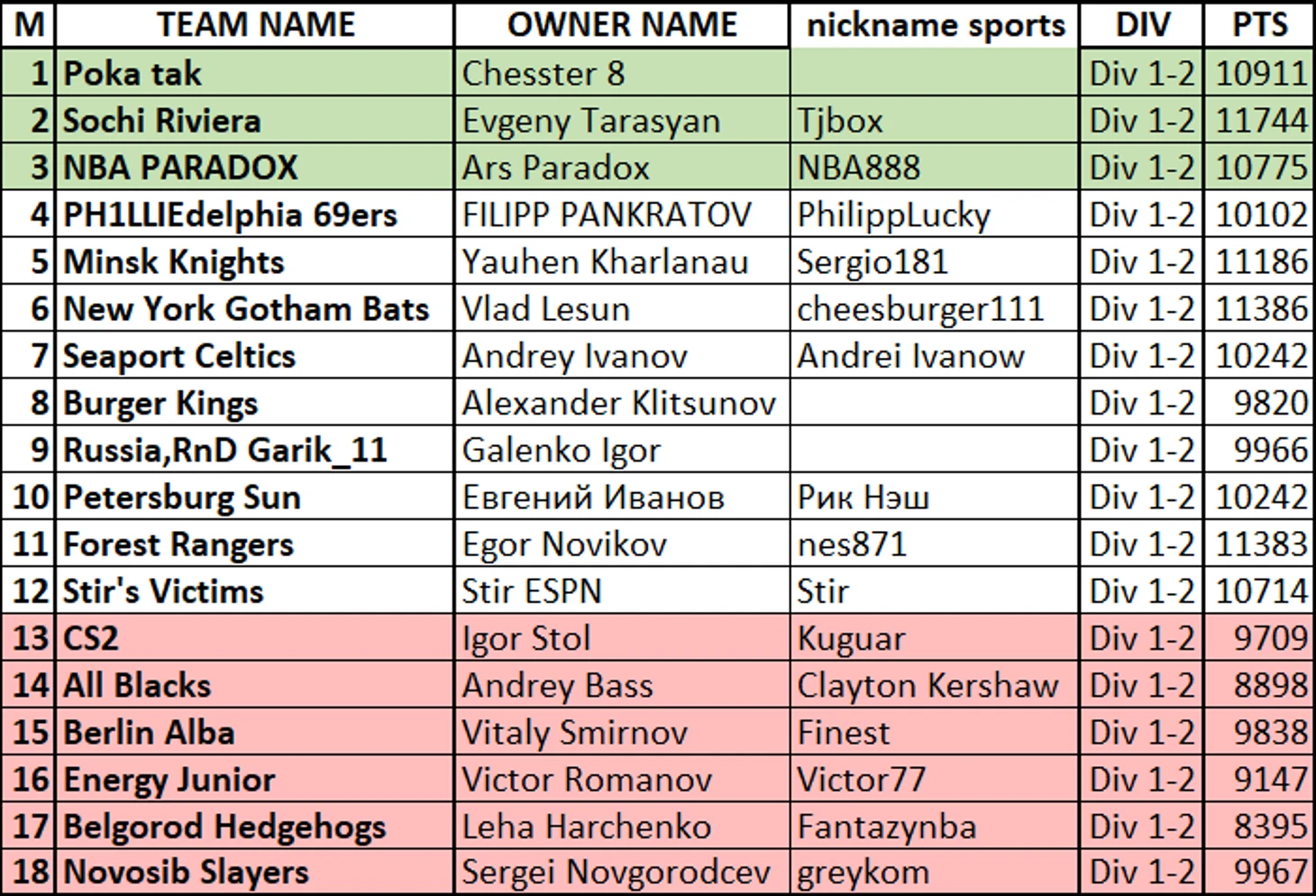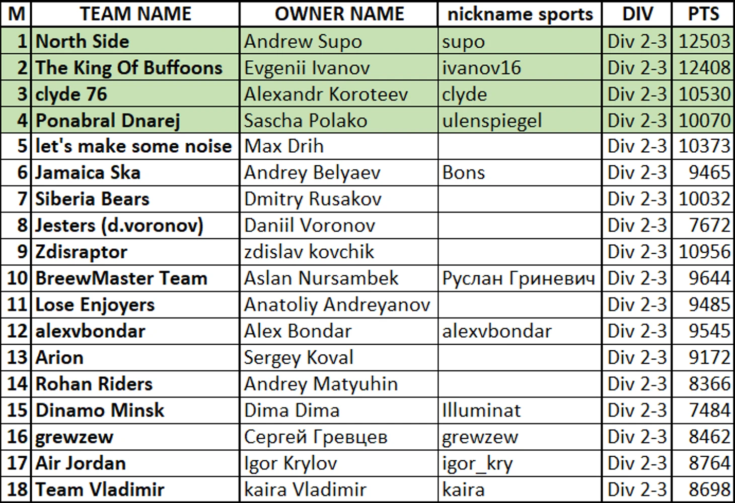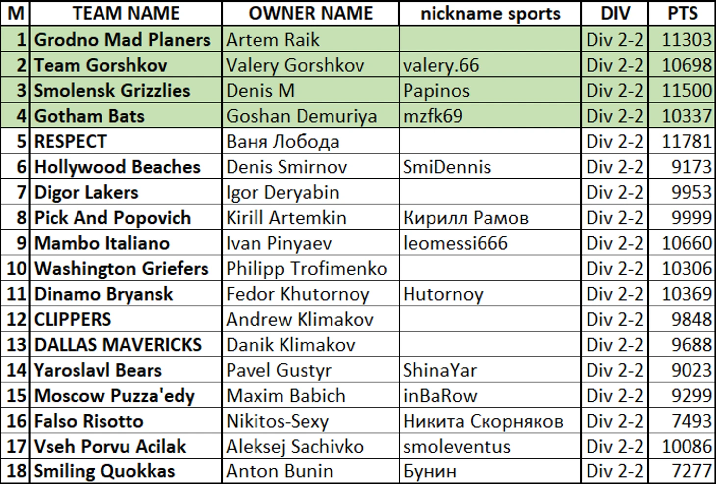 Незаявившиеся из прошлого сезона участники будут заменены на других согласно ранжиру по итогам прошлого сезона (Дивизион, место, PTS с учетом того, что вылетевшие место в лиге выше, в случае чьей-то неявки, не сохраняют).
