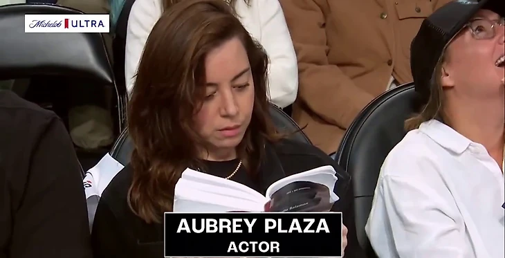 Все четыре эксперта ESPN поставили на победу «Нью-Йорка». Актер Джейсон Судейкис – уже привычное лицо на играх «Нью-Йорка». Спайк Ли – он патриот всего нью-йоркского, поэтому он тоже заглянул. Еще в трансляции выцепили забавную Обри Плазу, которая вполне в своем духе читала во время перерыва… книгу.