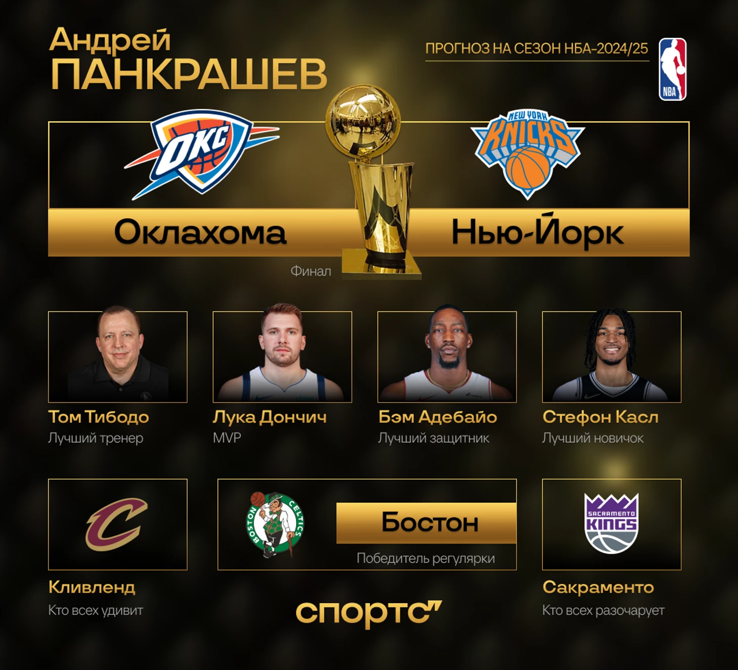 Разочарованием станет Милуоки, тут как-то все очевидно и то что Яннис уже перед сезоном стеллит себе дорожку говорит о многом. А вот лучшим тренером станет думаю Тибс, Никс вообще будут очень интересной командой и уверен что думаю их финал Востока с Бостоном будет очень эпичным.