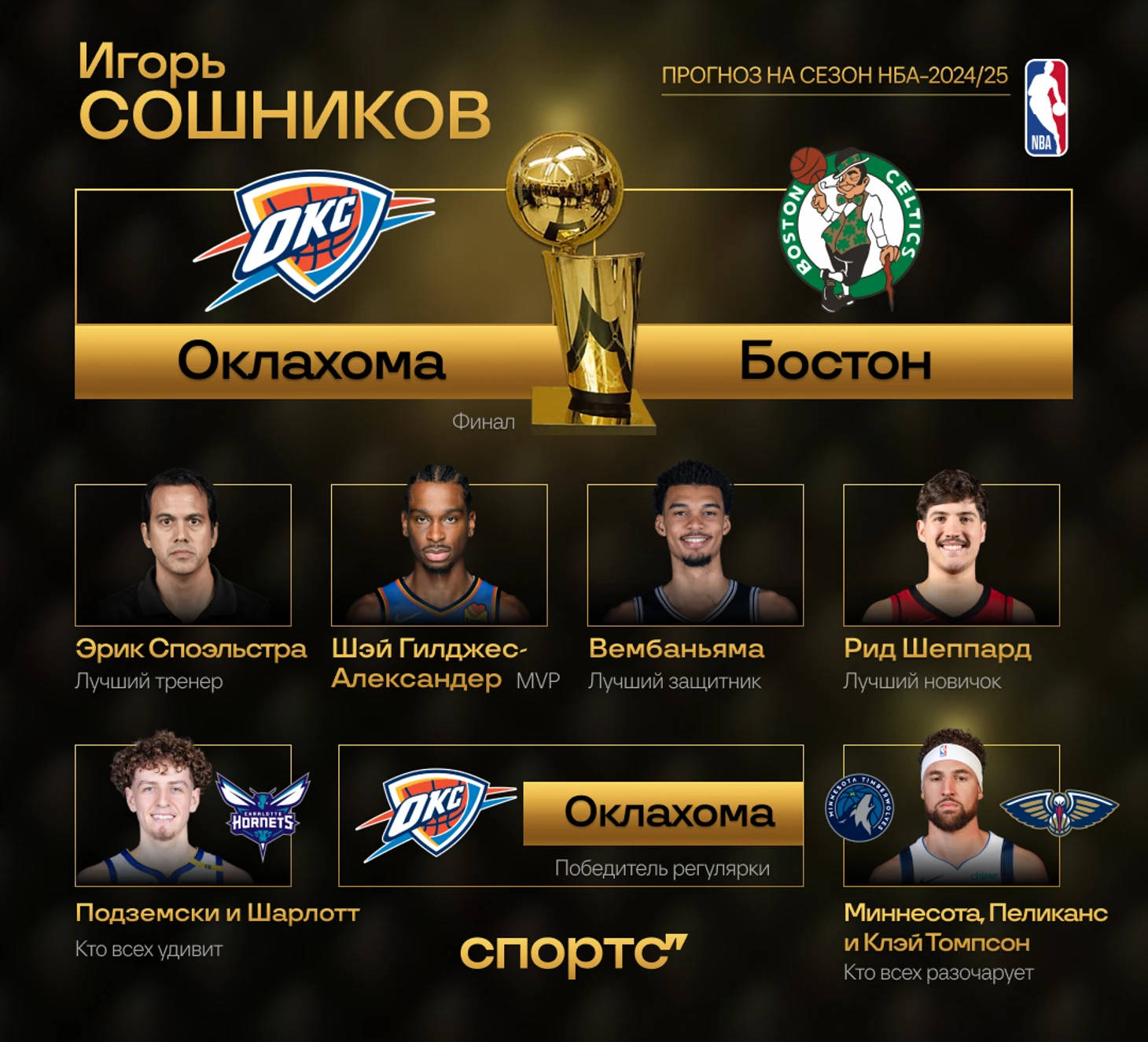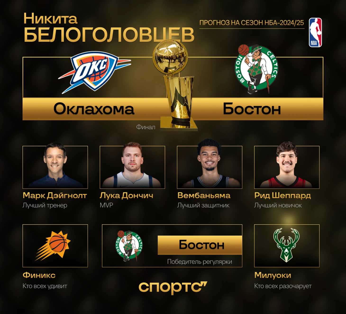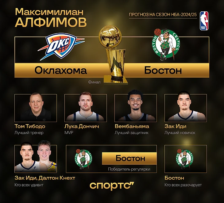 Лука и ШГА бьются за MVP, «Оклахома» и «Бостон» – в финале. Какой будет НБА-24/25