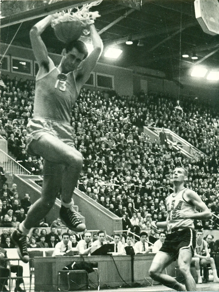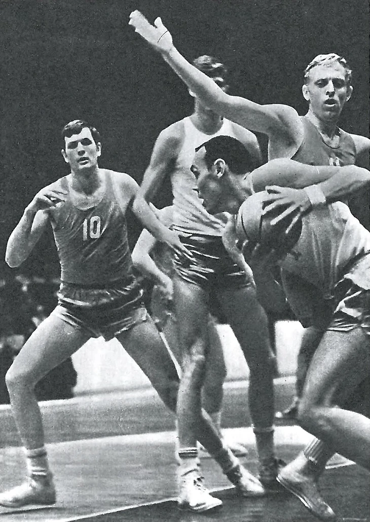 21 апреля 1964. Москва. Дворец спорта в Лужниках. На глазах 16 тысяч зрителей сборная СССР впервые за 7 лет американо-советского соперничества обыгрывает дома сборную США – 82:65. В атаке Геннадий Вольнов, который в этом матче наберет 14 очков