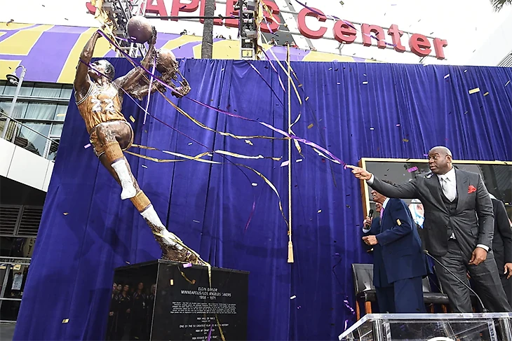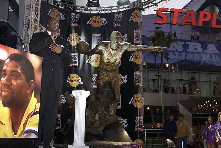 Все потому, что, несмотря на кажущееся обилие, статуй, посвященных игрокам НБА, не так уж много. Большая их часть толпится возле домашней арены «Лейкерс». Тут представлен авангард «Шоутайм Лейкерс»: Мэджик Джонсон, Джеймс Уорти и Карим Абдул-Джаббар.