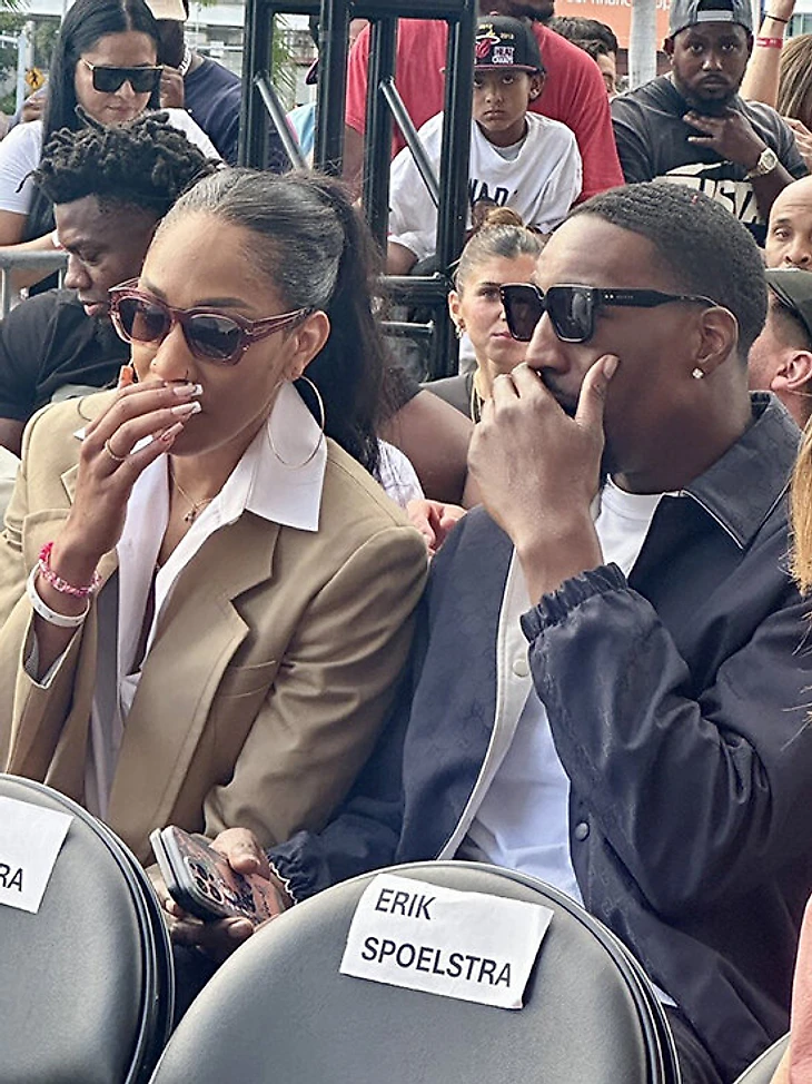 Щепотку абсурда и драматизма добавляет стоящий перед ними пустой стул с именем Эрика Споэльстры. Видимо, главный тренер не выдержал позора и ретировался.