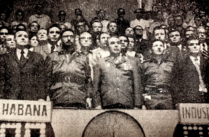 1 февраля 1974. Гавана. Фидель Кастро и Леонид Брежнев на матче Куба — СССР. Исполняются государственные гимны