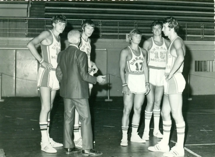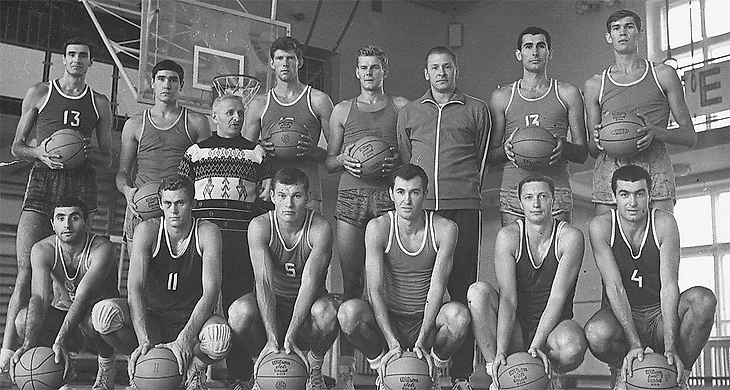 Конец сентября 1968 года. Одна из последних тренировок сборной СССР перед вылетом на Олимпийские игры в Мехико. Слева направо: стоят — Владимир Андреев, Анатолий Поливода, главный тренер Александр Гомельский, Сергей Коваленко, Яак Липсо, тренер Юрий Озеров, Геннадий Вольнов, Алжан Жармухамедов; сидят — Зураб Саканделидзе, Прийт Томсон, Модестас Паулаускас, Сергей Белов, Юрий Селихов, Вадим Капранов