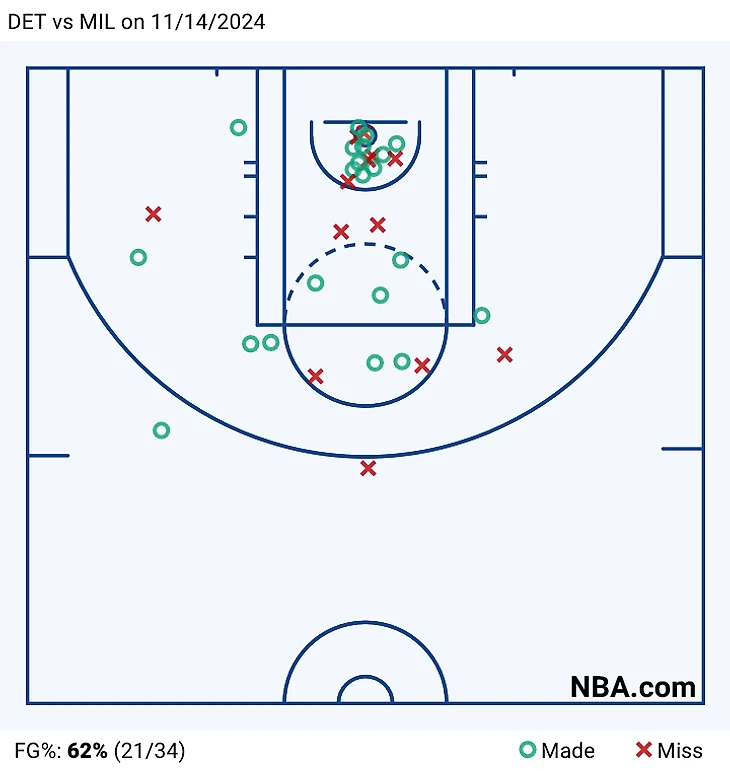 Этой ночью в матче с «Детройт Пистонс» Адетокумбо отыграл 44 минуты, набрал 59 очков, сделал 14 подборов, 7 ассистов и 3 блок-шота. Он вытащил победу практически один.