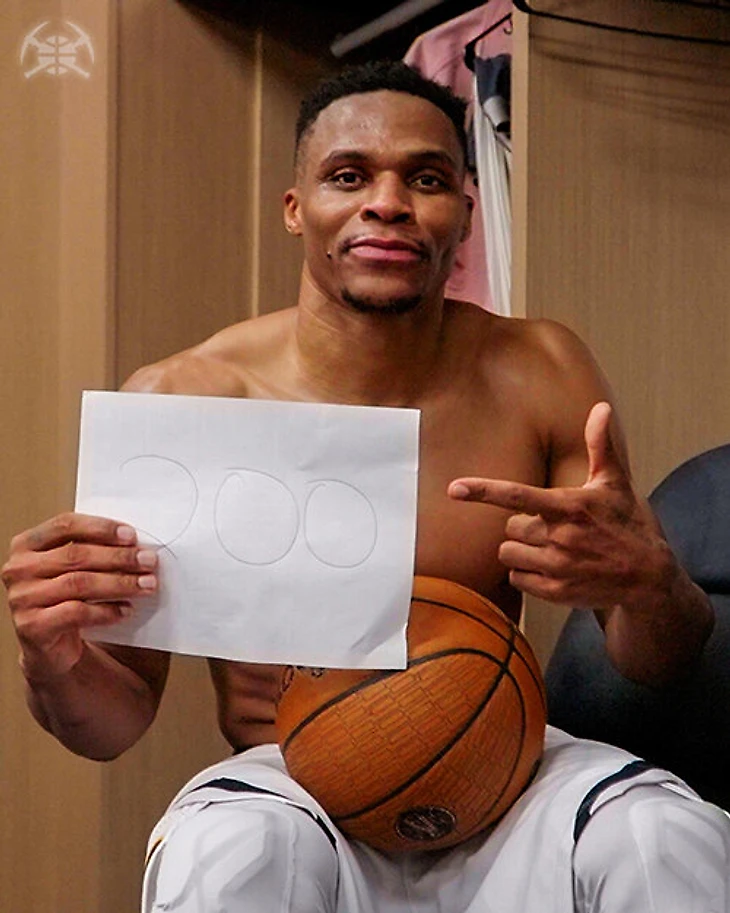 И, наверное, единственное, что привлекло внимание к очередному достижению разыгрывающего – это то, что он вообще достиг этой круглой цифры. В сезоне-2021/22 Уэстбрук попал в «Лейкерс», когда у него было 184 трипл-дабла, и тогда его карьера резко пошла на спад – он очутился сначала на скамейке, а потом и вовсе в «Клипперс», где смог сделать лишь один трипл-дабл. В «Денвере» к этому тоже ничего не располагало, и вот сейчас лишь благодаря тому, что Никола Йокич пропускает матчи по семейным обстоятельствам, у 36-летнего защитника появилась возможность много времени провести на площадке и чаще работать с мячом.