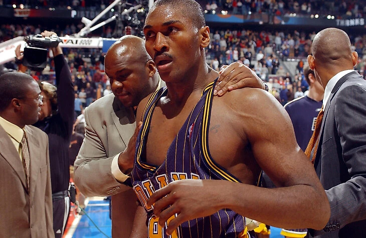 Перебранка между Беном Уоллесом и Роном Артестом, переросшая в толкотню между игроками (болельщики еще не были замешаны), случилась за 46 секунд до конца матча, при счете 97:82 в пользу гостей из «Индианы».