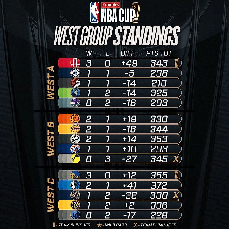 Здесь тоже четыре команды – все кроме Юты – могут заработать первую строчку и выход напрямую в 1/4. Значит есть шанс увидеть хороший настрой в последние два игровых дня. В субботу из этой группы играет только Оклахома в Лос-Анджелесе. Посмотрим: будет ли в этом матче играть «голливуд» или им одного баннера уже достаточно. Сегодня по крайней мере Лейкерс свою лавину поражений смогли остановить и вне Кубка подавили в гостях Сан-Антонио (119:101).