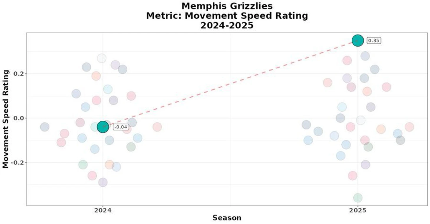 Нынешнему «Мемфису» требуется 12,6 секунды на бросок или потерю мяча. Это второй клуб в истории по скорости атаки. Быстрее – лишь «Оклахома» образца-2018/19. 27% владений «Мемфиса» проходят в быстрых переходах. В прошлом году было лишь 16,4%.