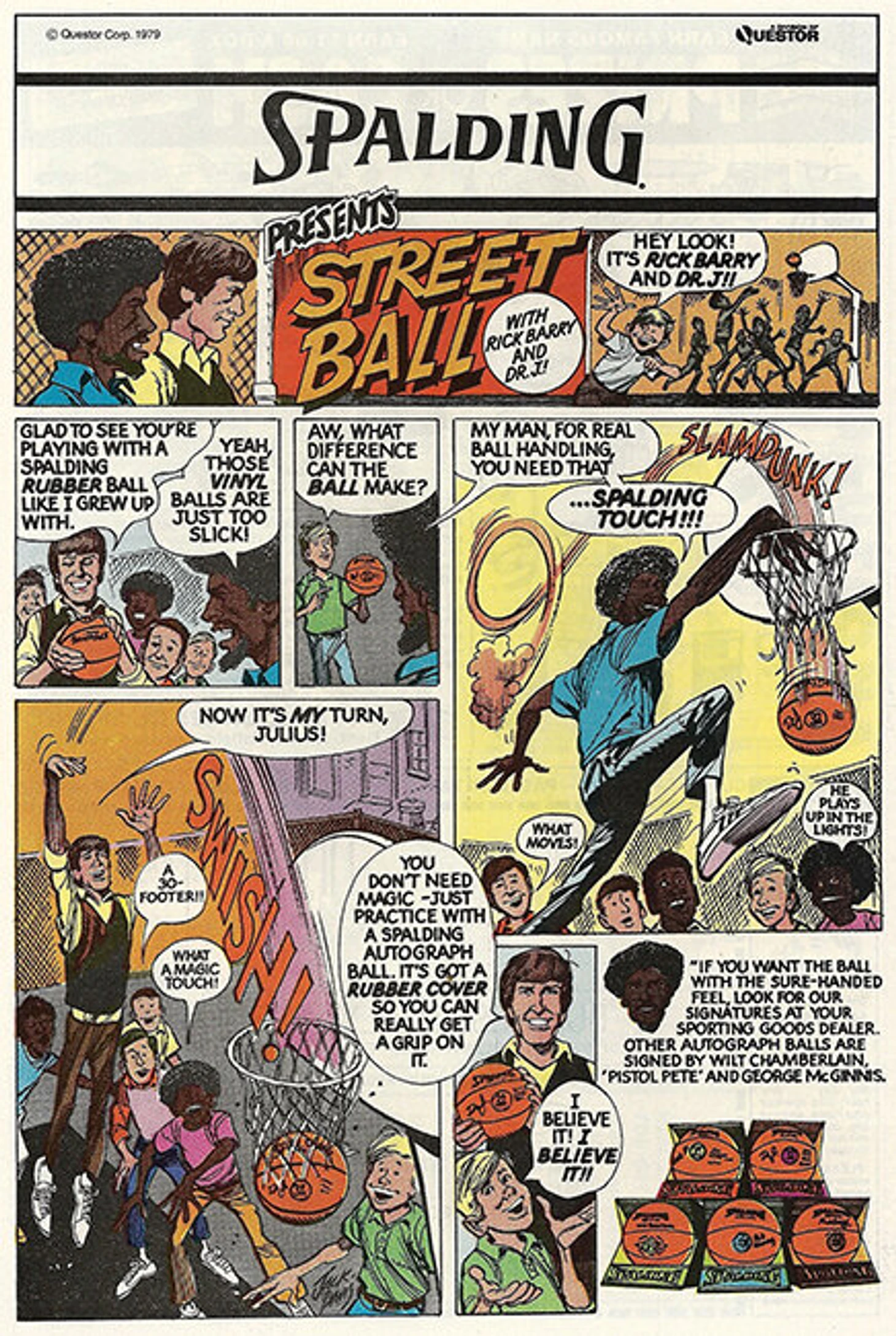 Глядя на чудодейственный «Эффект Дэвиса», стали подтягиваться и остальные. Так началось достаточно длительное сотрудничество художника и известной всем любителям баскетбола компании Spalding. Дэвис изготовил для производителей легендарных мячей несколько иллюстраций, но наиболее известной стал сюжет под незатейливым названием «Стритбол». Звезды НБА Джулиус Ирвинг и Рик Бэрри демонстрируют свои навыки группе восхищенных пацанов. Продажи Spalding так рванули вверх, что сюжет стали печатать не только в качестве плакатов, а в качестве задников для обложек комиксов. В таком виде он просуществовал несколько лет.