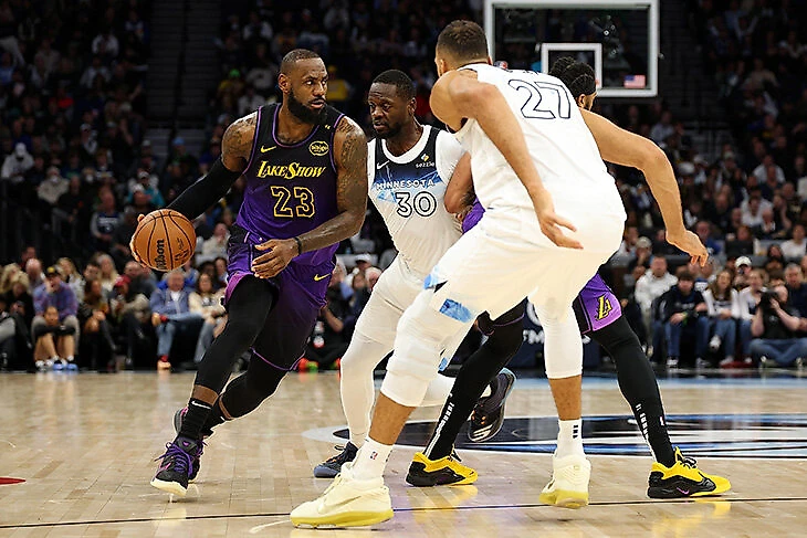 Вот как это выглядело на самом старте сезона против «Лейкерс» – форвард ЛАЛ Хатимура давит Макдэниелса и прошивает на скорости Рэндла, старый знакомый Д’Анджело Расселл раскачивает на периметре Никила (которого вместе с Конли «Вулвс» как раз получили в обмене ДиЛо) и возит миннесотскую «зону» своими открываниями внутрь. С Дэвисом не справляется никто, а Конли вообще некуда приткнуть на своей половине. Это абсолютно дикое количество проблем, вытекающих из матч-апов, для топовой обороны против «Лейкерс».