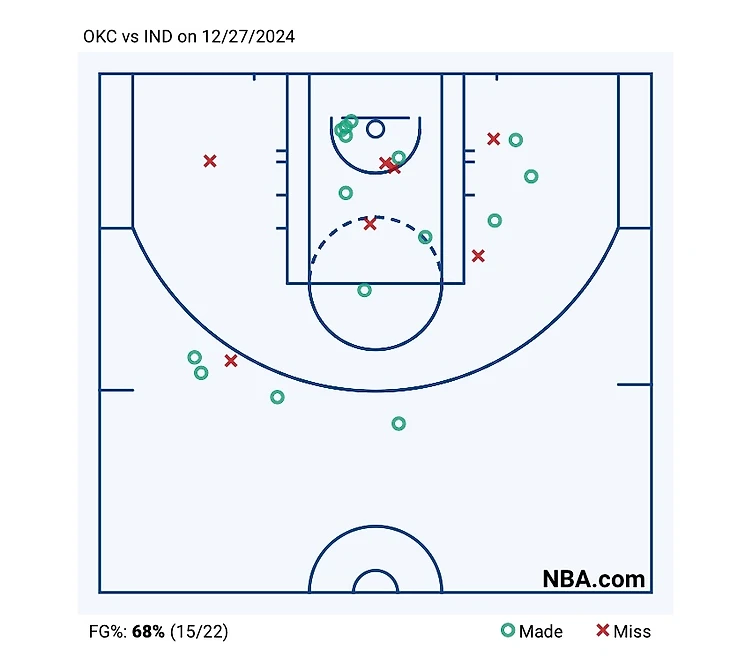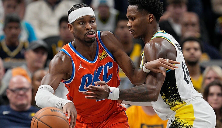 «Оклахома» прервала победную серию «Пэйсерс» из 5 матчей. В центре внимания оказалась дуэль канадцев: Эндрю Нембхард с 23 очками и неудержимый Шэй Гилджес-Александер с 45. Последний стал первым игроком «Тандер» со времен Расселла Уэстбрука с двумя подряд матчами с 40+ очками.