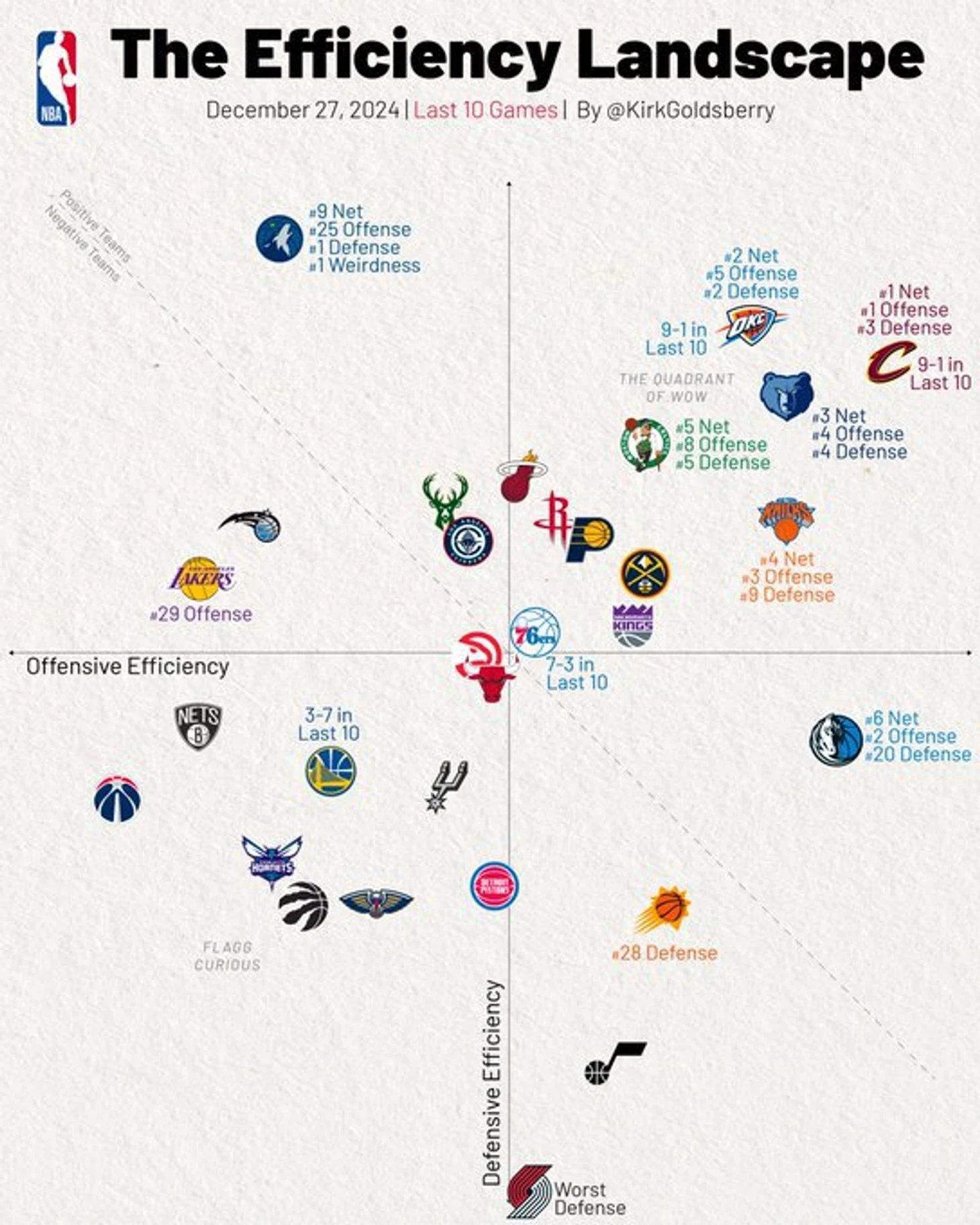 В Нью-Йорке хозяйничает по-прежнему Брансон, но Таунс умеет быть не-альфой очень качественно и результативно. Оба никербокера стабильно в топ-10 самых результативных игроков лиги. Карл фармит подборы, Джейлен – ассисты. А, когда лидерам нужно помочь, могут мощно выйти из тени и Ануноби, и Микел Бриджес. Но в декабре лидеры Нью-Йорка отрабатывают свои деньги по полной, да и критикам обмена (кто будет теперь с вашим плюшевым Таунсом защищаться) пока аргументов для срача не дают.