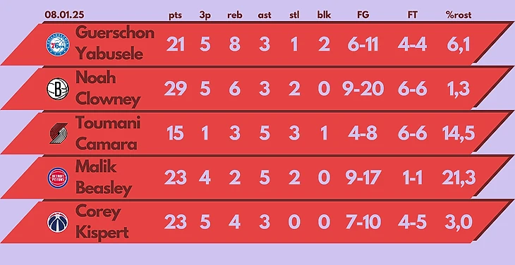 Каждый день выделяю несколько игроков, которые не особо популярны у менеджеров фэнтези-команд (в этот список входят игроки, процент задействованности которых меньше 40%. Источник - параметр «%ROST» из лиги Fantasy ESPN).
